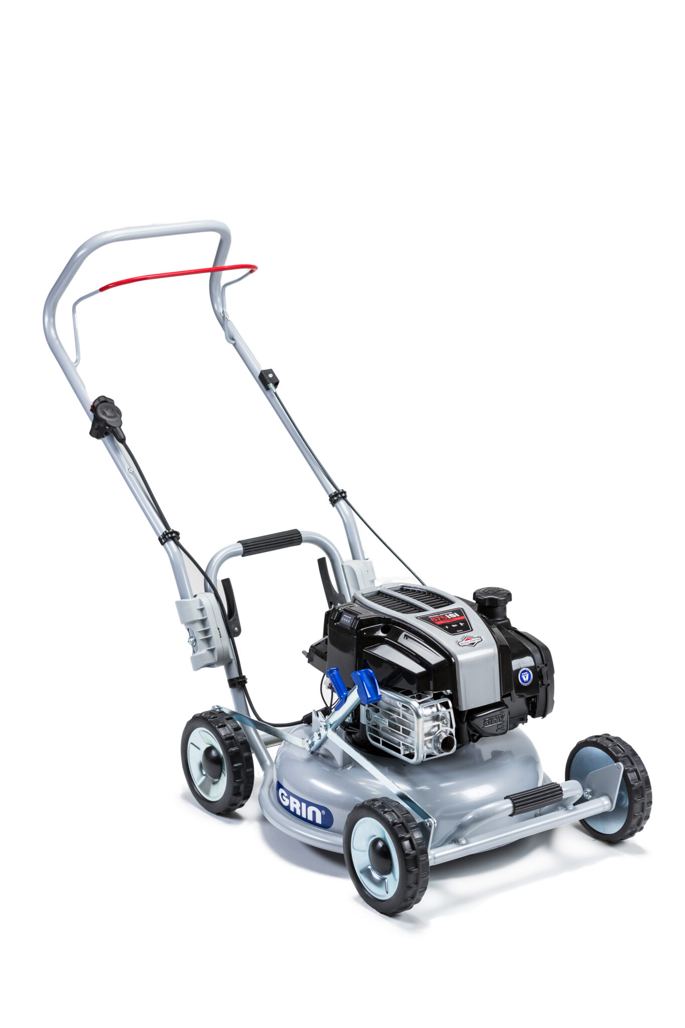 Le châssis GRIN a une forme ergonomique conçue pour améliorer la maniabilité de la tondeuse et pour la transporter facilement. Deux poignées permettent de soulever aisément la machine pour la transporter en présence d’escaliers ou d’endroits peu pratiques à l’intérieur du jardin. Avec le guidon rabattu, les tondeuses GRIN sont facilement transportables même dans les voitures les plus petites.