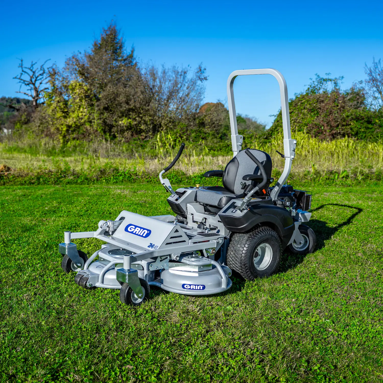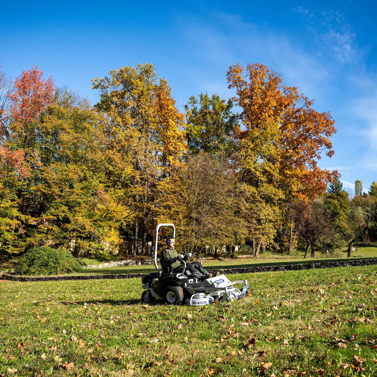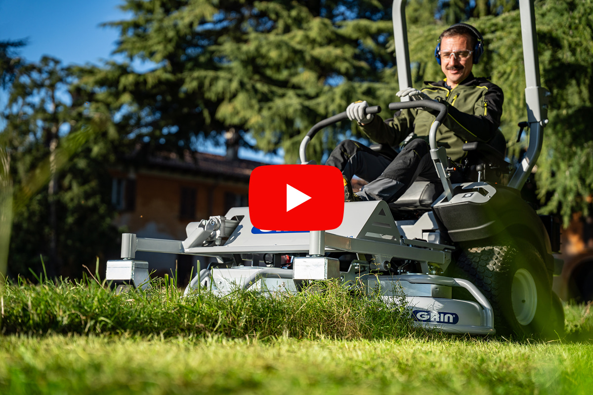 GRIN ZM est une tondeuse autoportée avec plateau frontal dédié à l’entretien des grandes espaces verts.